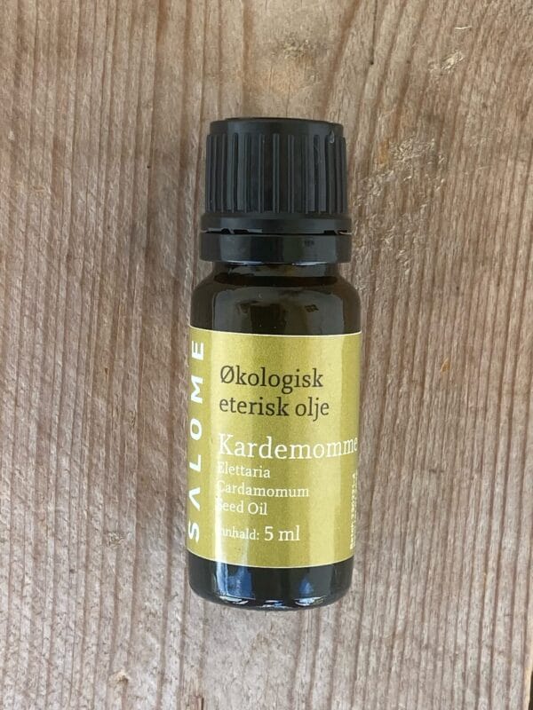 Fysisk støtte: Eterisk olje av kardemomme er appetittstimulerande og fremjer fordøyinga, og kan brukast ved vond mage. Bland olje i baseolje og masser over magen – i retning med klokka. Den er slimløysande og er god for luftvegane. Bruk den gjerne på vonde musklar.  kan brukast ved luftvegsutfordringar. God til innhallering eller utblanda i ei baseolje og kan smørjast på brystet. Den er også god på vonde og slitne musklar.
